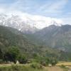 We are on the third day of a trek, hiking a ridge at 10,000 feet in view of the Annapurna peaks.