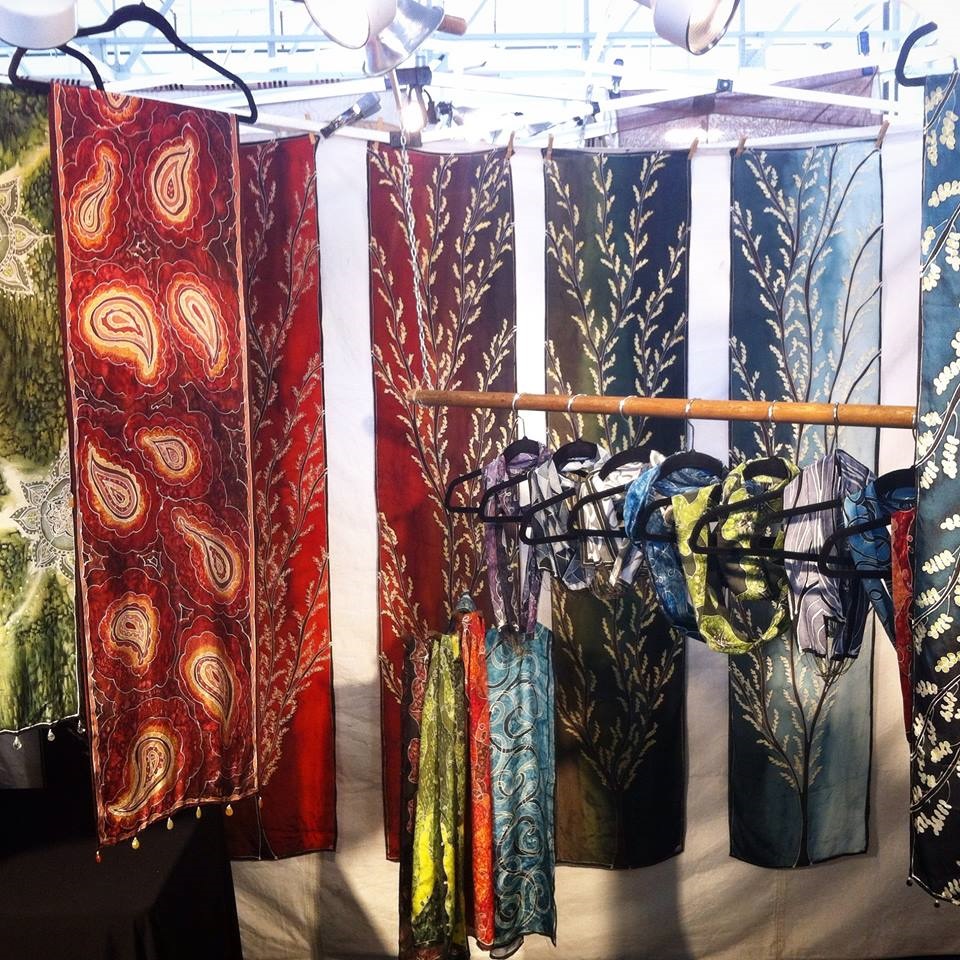 It was the obvious course for it to take. I was already freelancing, doing web development, so self-employment was familiar territory. I sold my silks at a couple of small art walks in Urbana, Illinois, and then at a weekly farmers market, and it was enough to get me thinking that if I did it on a larger scale, I wouldn't need a "regular job." It felt like the only way to go. I didn't really know what else to do with myself, since I didn't want to do web development full-time. When I moved to Portland after a couple of years painting in Illinois, I immediately applied to the Saturday Market to see if I could have a consistent venue. I found I could sell enough to stay afloat, and that was huge for me, so I phased out the web work, and have been going on just silk painting ever since.